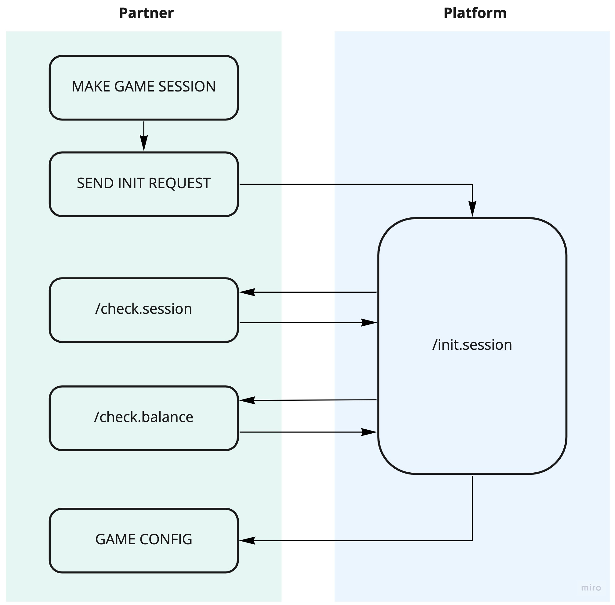 Партнершлет баланс сессии на своей стороне, аПлатформасверяет его со своими данными. Таким образом гарантируется механизм совпадения баланса как на стороне платформы так и на стороне партнера в любой момент времени.